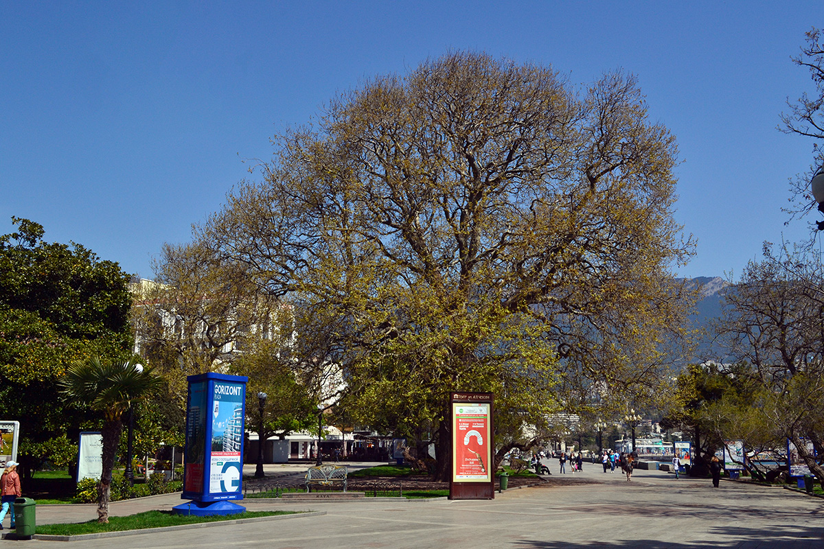 Na Krymu se nejstarší exempláře platanů nacházejí v Alupském parku a Nikitské botanické zahradě, jejich stáří je asi 150 let.